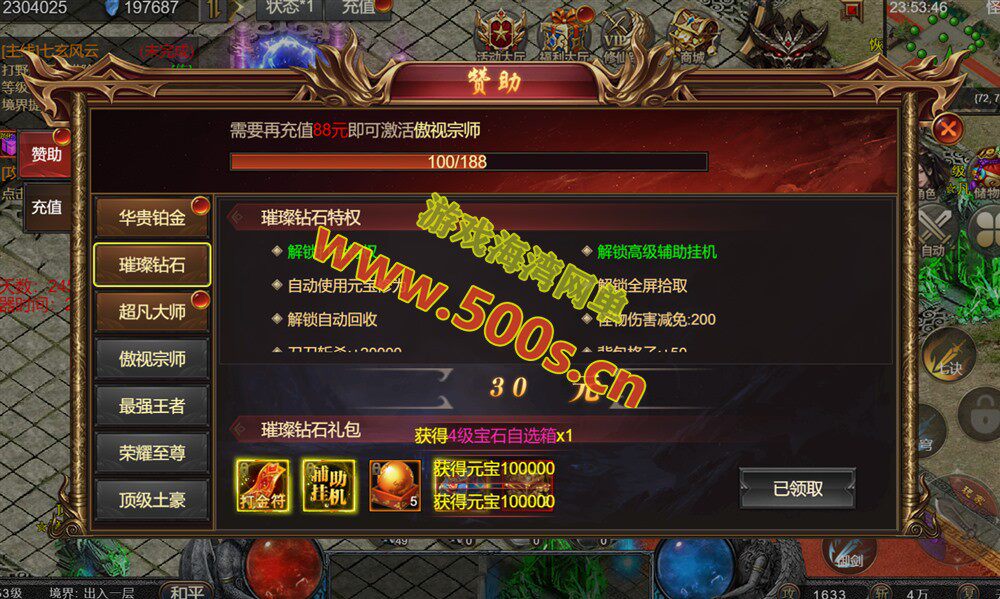 (3)宝石:击杀云梦盗圣免费刷宝石!合成高级能获得更多的属性!