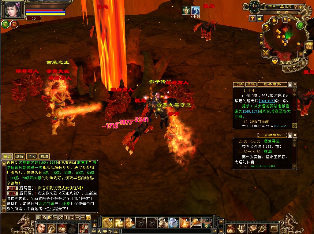 2个小时整点各大野外刷新几十个机器人PK,注意左下角系统消息!