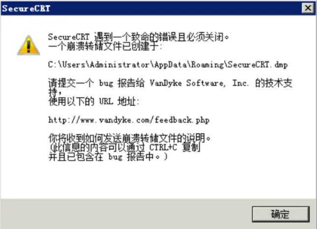 打开SecureCRT时报错:SecureCRT遇到一个致命的错误且发须关闭。一个崩溃转储文件已创建于…