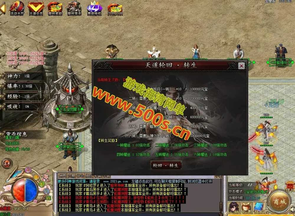 此版本自带的假人, 可以会自动全地图打怪。玩法比较丰富,界面华丽,是一款非常适合单刷的传奇版本!