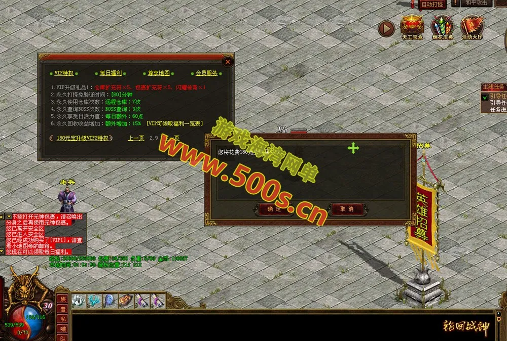 三、[高级阶段]    建议购买VIP,VIP地图将会获得更高的怪物等级经验。加速升级。    VIP可获得额外的 活力值购买机会。