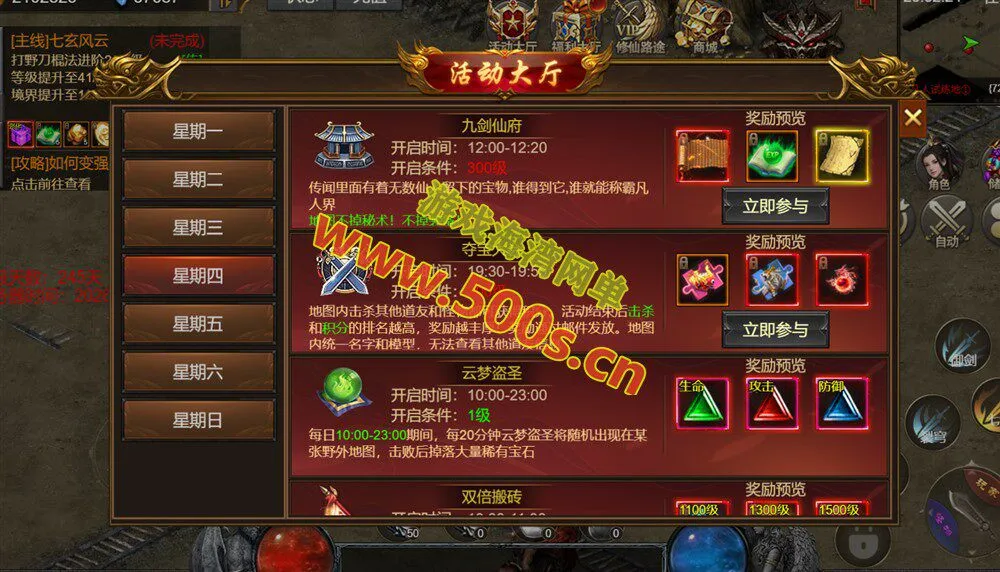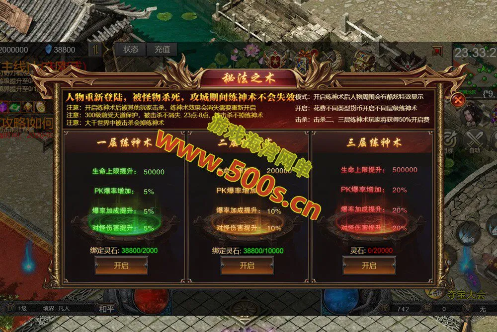 (3)宝石:击杀云梦盗圣免费刷宝石!合成高级能获得更多的属性!