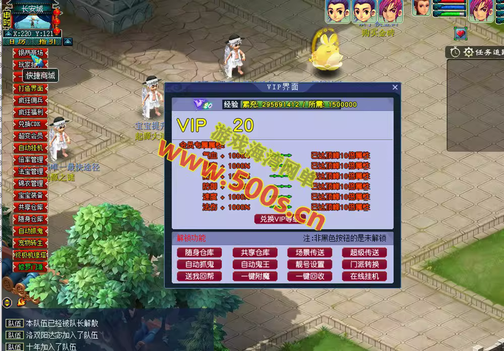 此版本属于超变版本,系统机制很多。伐木佣兵系统-福利系统-会员系统-挂机系统-机缘塔系等。可同账号下角色一键组队,并任意切换角色。