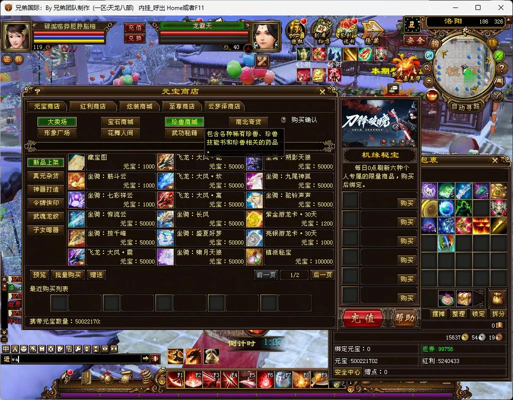 针对门派神器装备重楼属性魔改更适合一个人玩耍,挺不错的版本!