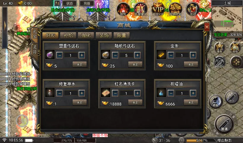 (7)装备顺序:沃玛-祖玛-赤月-魔龙-火龙-金牛-雷炎-荣耀-虎威-主宰-传奇-皓月-刺影-神龙-魅影-血影