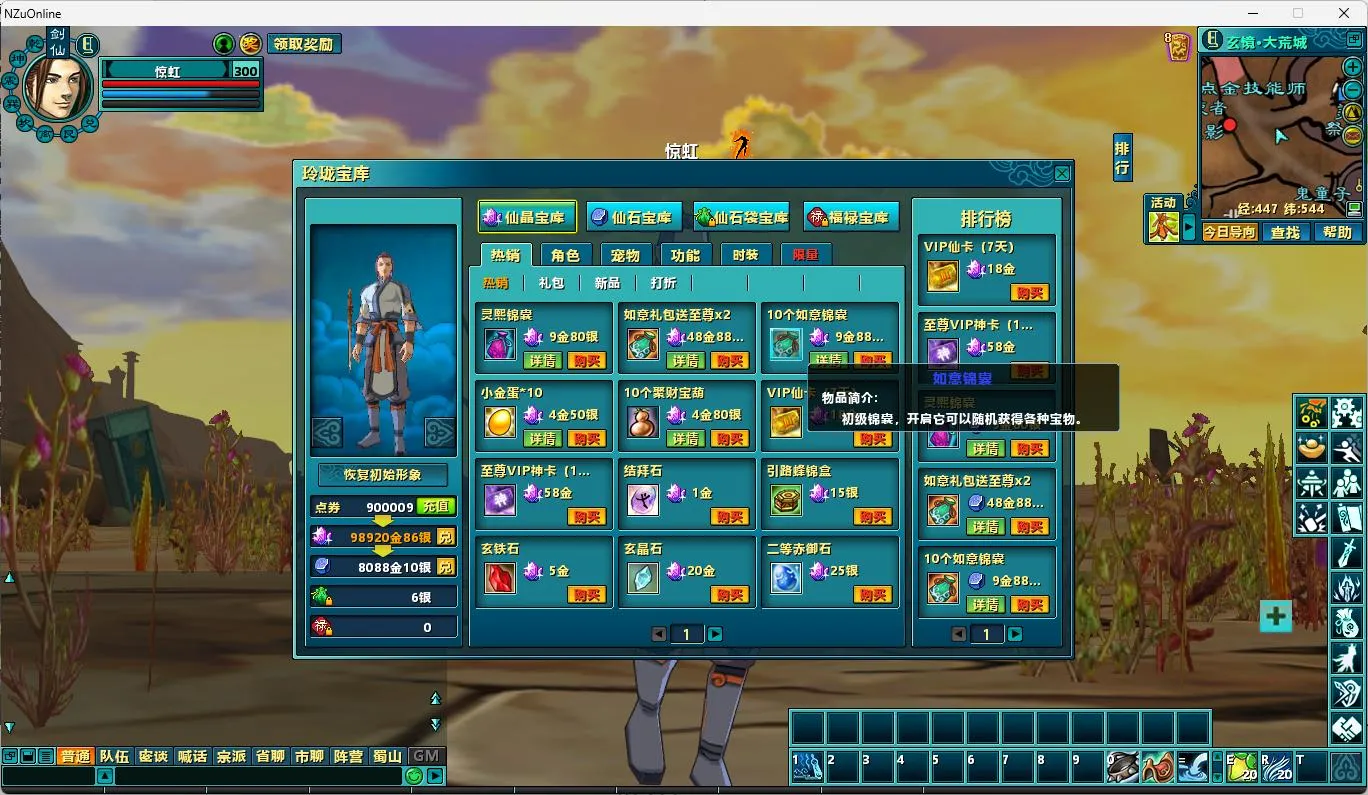 【新蜀山OL】虚拟机完整一键端带9神装备时装四神兽翅膀价值588元