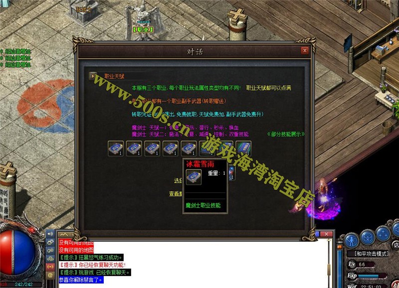 每一个职业 都有两种天赋玩法、玩家自由选择、各种专属技能BUFF、(具体玩法自行体验)