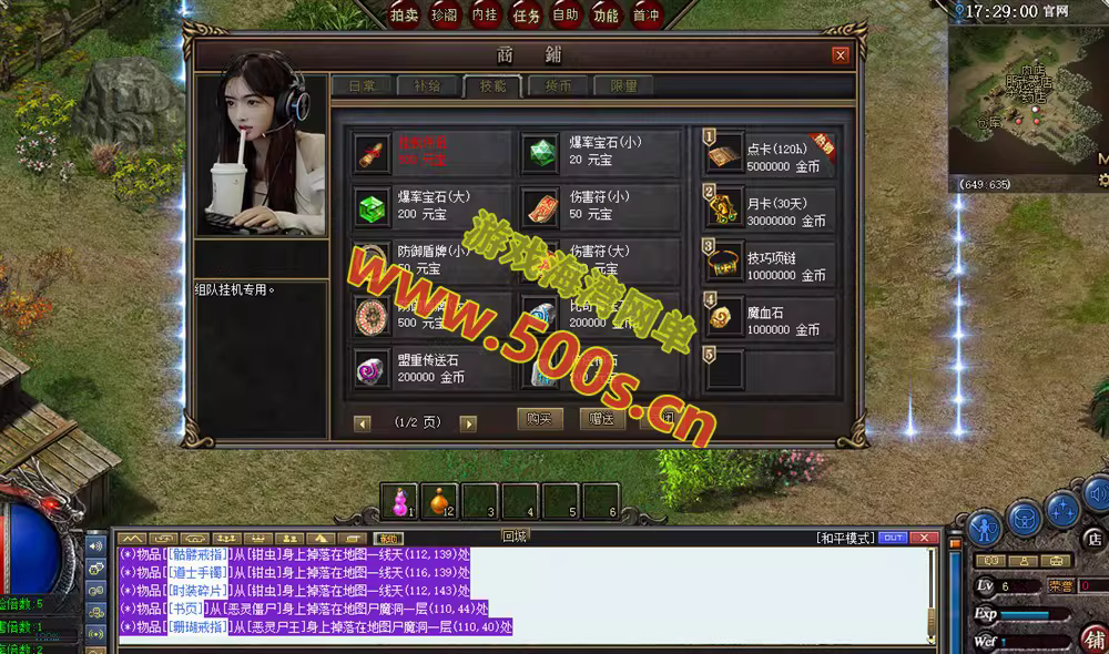 更新:智能回收系统(点卡用户可以选择金币,元宝,灵符进行回收物品,并增加很多装备物品的回收。)