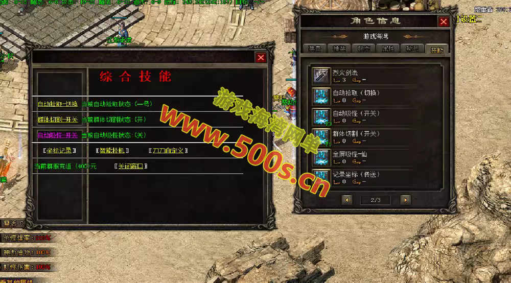 综合技能内:增加智能巡航挂机,可多图自动挂机,无人自动随机,死亡自动执行挂机等功能