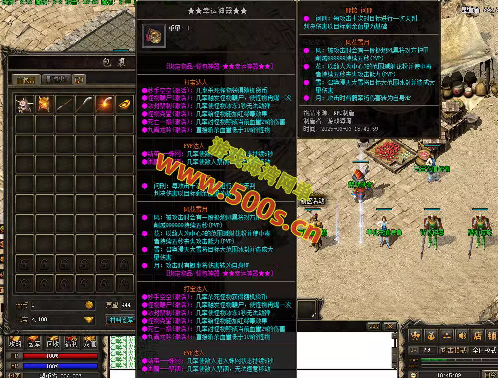 群服模式 50背包神器 200顶赞技能 500顶级背包神器