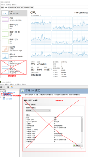 图 4-2 任务管理器和Nvidia控制面板信息