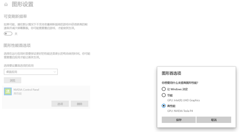 在图形设置中,选择P4用作图形运算设备