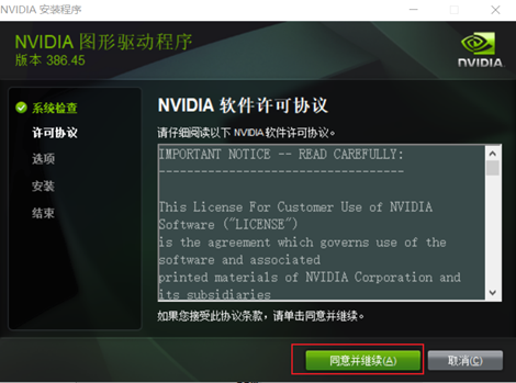 同意英伟达驱动协议条款,进入下一步