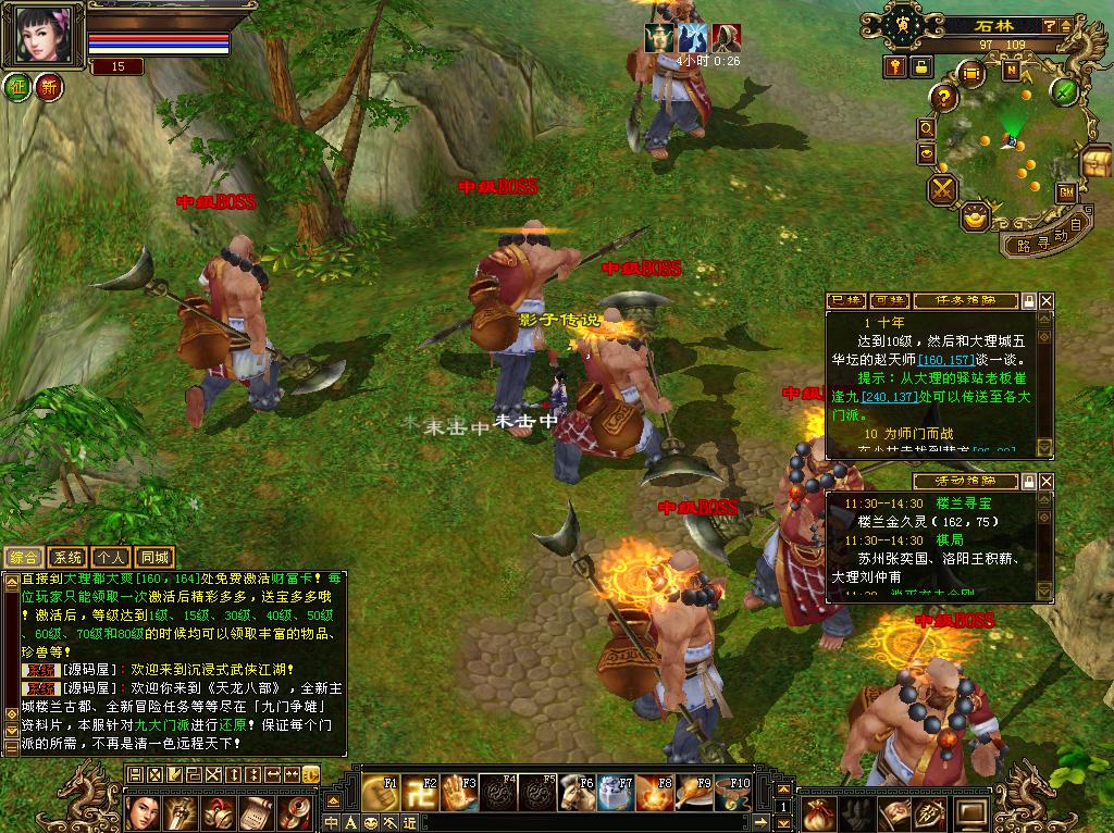 2个小时整点各大野外刷新几十个机器人PK,注意左下角系统消息!