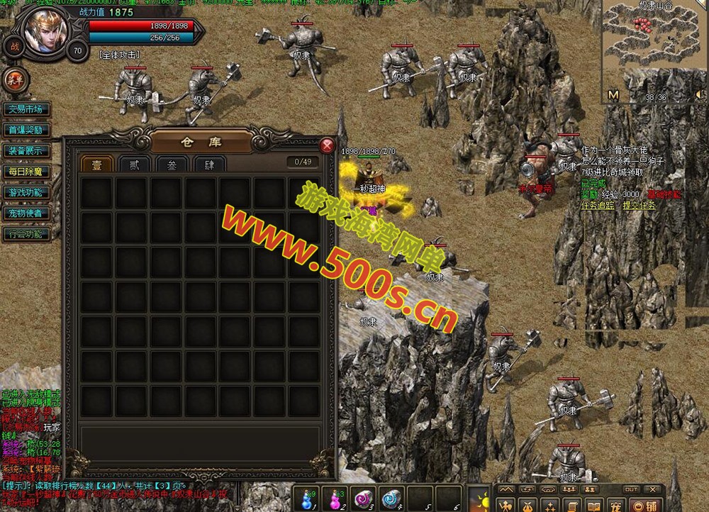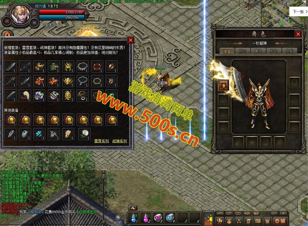 ③变态装备系统:设置了几乎所有装备的变态版,一直到赤月装备和赤月武器衣服,每件装备都有不同的被动属性,其中一些还可以往上升级,只有带◆◆颜色名字精怪才能爆出。