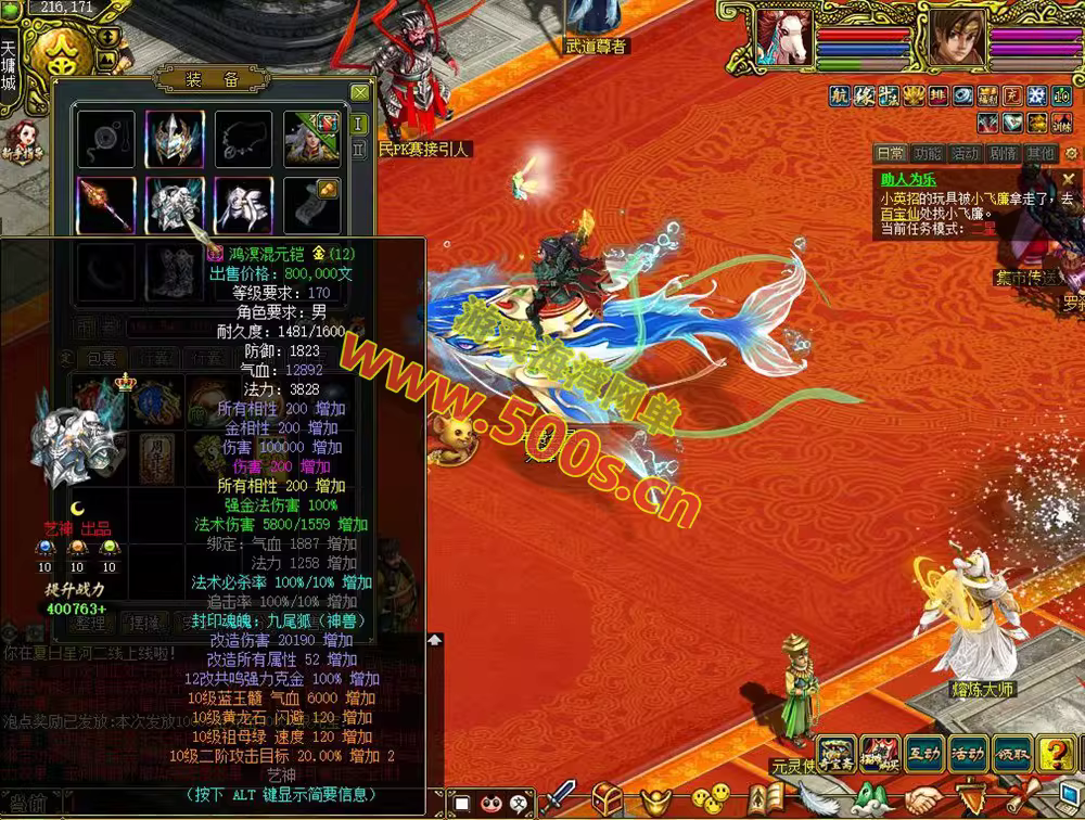 同步官方1.76版本,玩法全部仿官,顶级179级,装备最高改12,悟道12、最高仙元十速